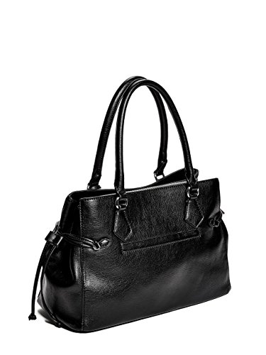 Studio : GByGUESS Publisher : GByGUESS Product Description Stay chic all day long with this sleek faux-leather satchel, featuring a removable keychain, dual top handles and drawstring sides. Complete with a top zipper, a divided denim-print lining and interior pockets. Designed with a front logo plaque. 0