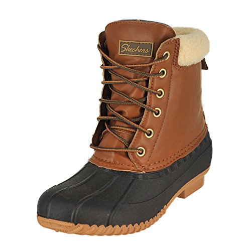 (Skechers)/Women's/Boots/DIRECT FROM USA/Skechers DUCK WADDLE Womens Black Tan Leather Water Resistant Casual Ankle Boots