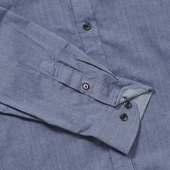 - 잔잔한 체크 조직 디자인을 매치한 남성 셔츠.