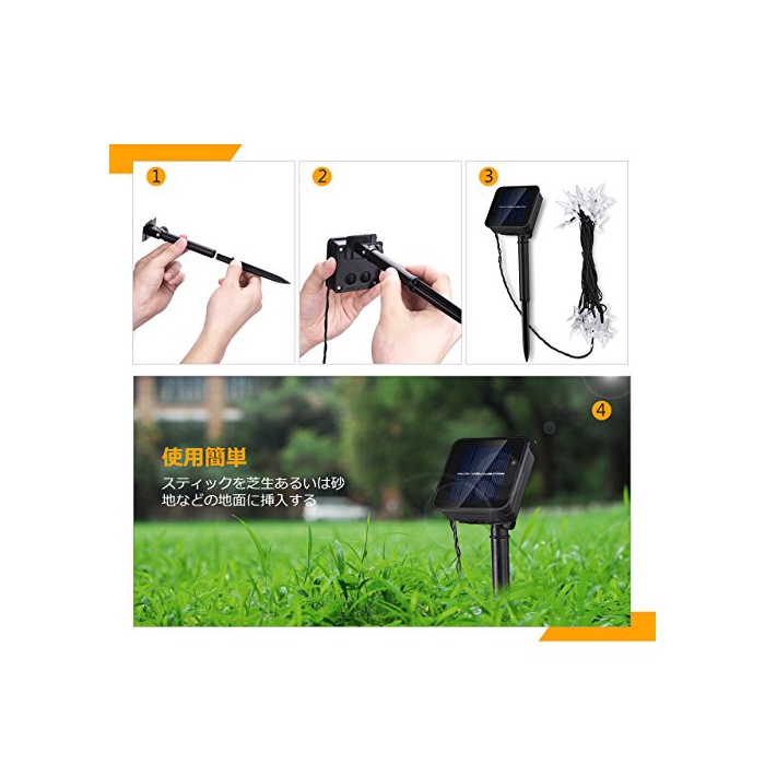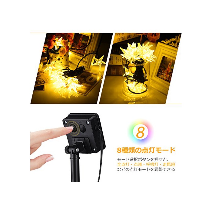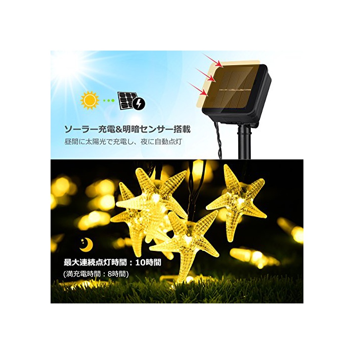 원본상품명: Qtopイルミネションライト ソラ充電式 20led電球 4.8m ストリングライト 飾ライト フェアリライト 8点モド 電球色 IP64防水 ledガデンライト 電飾 飾り クリスマ