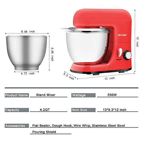 ▼PERFECT GIFT IDEA: ▲Cheftronic 4.2QT stand mixer is light (8.7 lb), easy to move, great for the new bakers, old folks or small kitchen. Easy to make cakes, breads, cookies, pastry, muffins and waffle, make your gift more special and memorable.