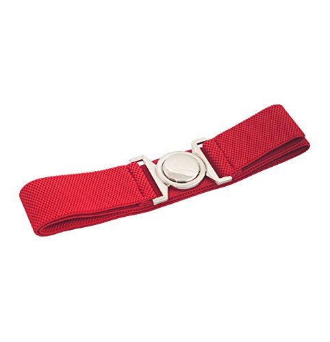 Product DescriptionPlus size belt features shiny silver round cinch buckle. Measures 1.5 inch width. This stretchy elastic belt will accommodate 34 to 44 inch waistline.0