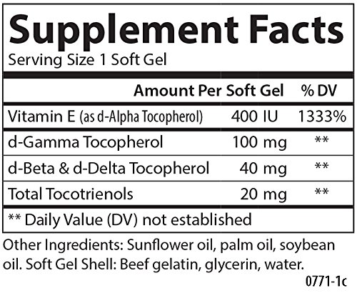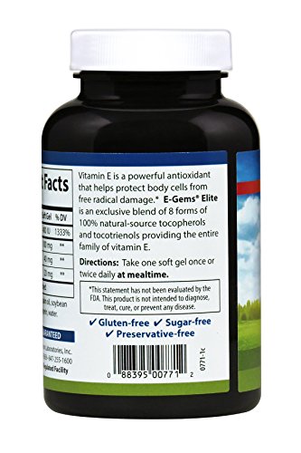 E-Gems Elite 400 IU is an exclusive blend of the entire vitamin E family, including eight forms of all-natural tocopherols and tocotrienols. Research shows all-natural vitamin E forms offer many health benefits and play an important role in cardiovascular health and protecting the body from free radical damage. Natural-source vitamin E is twice as active in our body as synthetic vitamin E.Feature