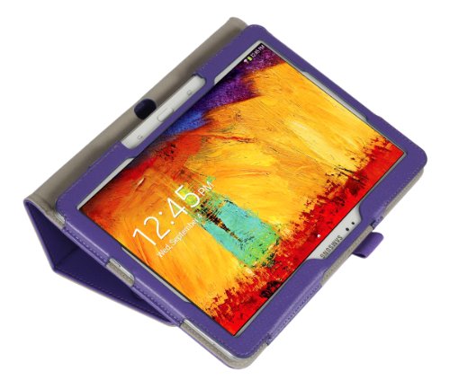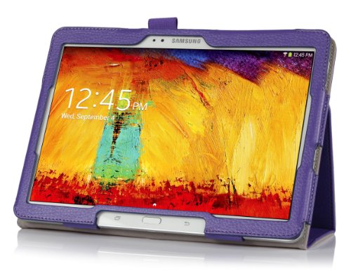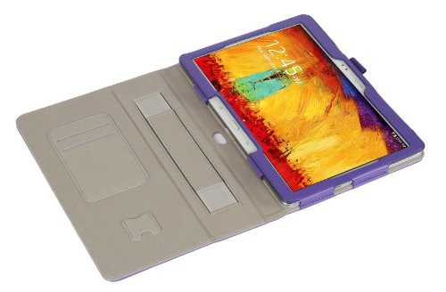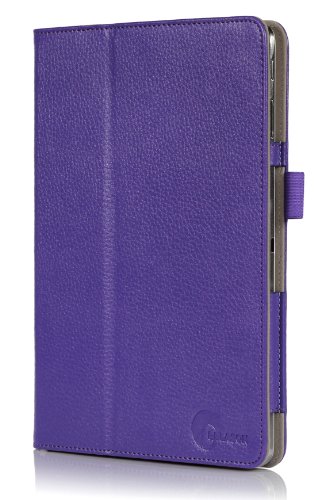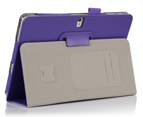 i-BLASON Samsung Galaxy Tab Pro 10.1 Case - Leather Book (Elastic Hand Strap, Multi-Angle, Card Holder) for SM-T520/525 With Bonus Stylus 3 Year Warranty (Purple)