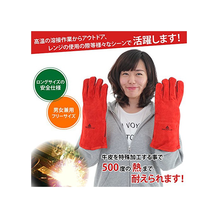 DELTA PLUS 내열 장갑 글로브 업무용 롱 캠프 아웃도어 고온 작업 바베큐 키친 신만들어 넣음(담는 그릇·상자 등) 최고방 열500도 소가죽 건착 대부