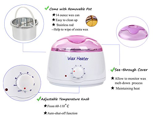 ✩Adjustable Temperature with Indicating Light: The wax warmer equips a wide range of temperature from 60 to 110 Celsius,speeding up the wax warming in a nice consistency.Auto-shut-off function in high temperature remains the wax in liquid but not overheat.