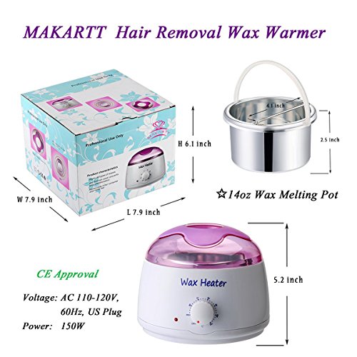 ✩Suitable for Most Wax Types: Makartt wax melting pot accommodates wax container and melt most wax format including hard wax, soft wax, 14 ounce wax cans, loose wax, bricks bikini wax kits, microwavable wax kits and hair waxing kits.