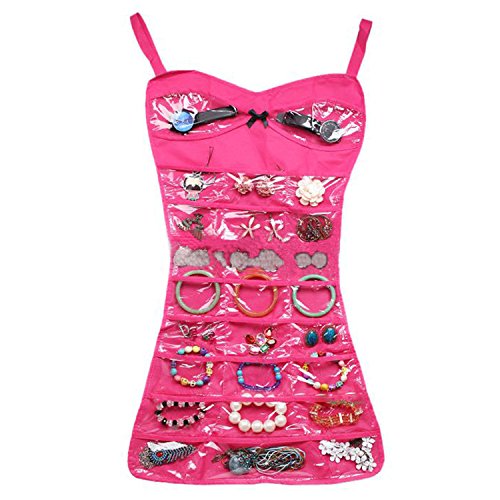 - Title : Ablevel Dual Sides Hanging Jewelry Non-woven Organizer Tabs Holder Storage Bag (Pink)