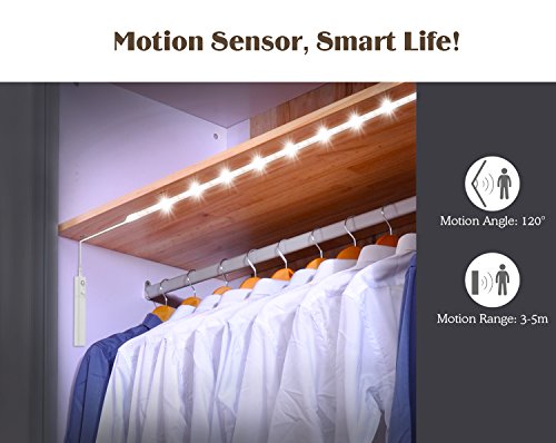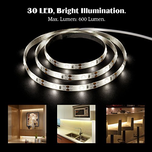 Led Strip Rope Light Kit, MoKo Flexible 1M 30 LED Dual Mode Strip Light with Human Motion Sensor, Waterproof Smart Night Light for Wardrobe, Cabinet, Closet, Bedroom, Kitchen, Basement - Natural White