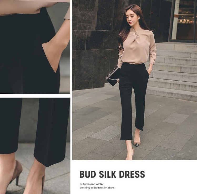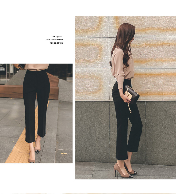 パンツはハイウエストタイプ+センタープレスライン入りですっきりとした美脚へとアシスト!