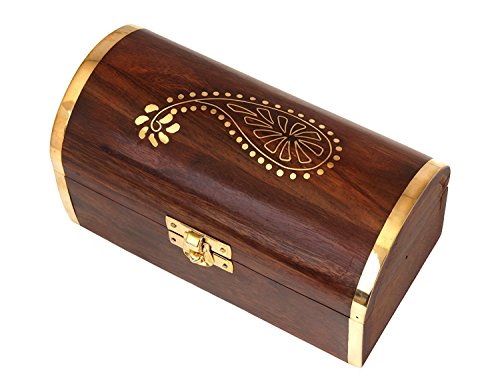 Black Friday Jewelry Trinket Chest Organizer Keepsake Storage Box Handcrafted Wooden Organizer with Paisley Brass Inlay