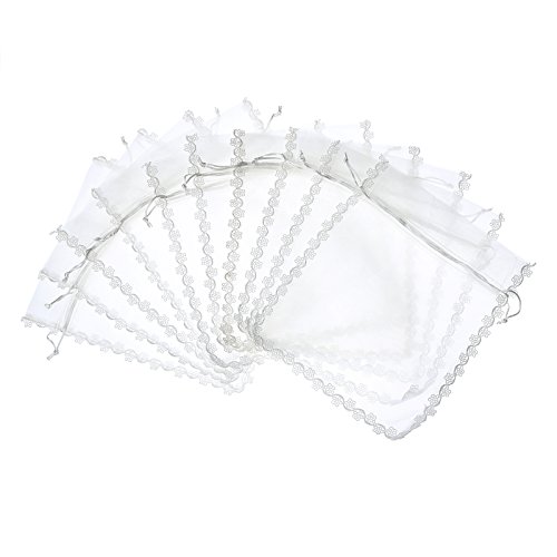 Anleolife 10pcs Sheer Large Organza Drawstring Bags Pouches Gift Bags For Wedding Baby Shower Favors Samples Display Organizer 10*8 inch (white)