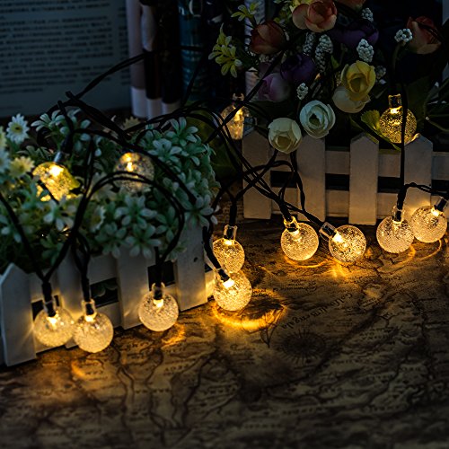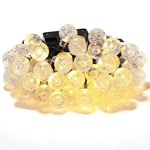 Solar String Lights, Longer and Brighter 29ft 50LED Crystal Ball Solar Powered Outdoor Decorations Fairy Lights for Garden Fence Path Christmas Parties (warm white)