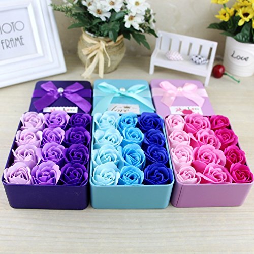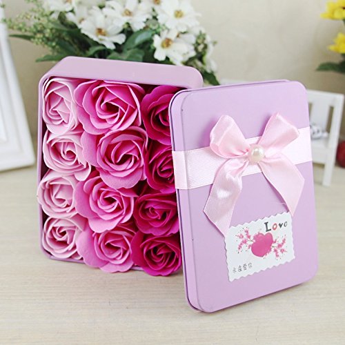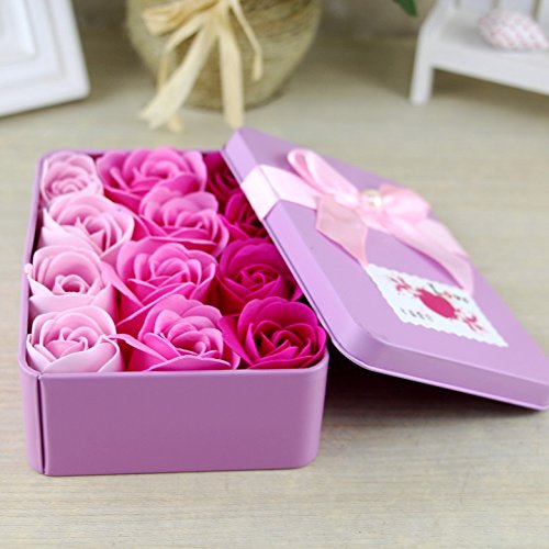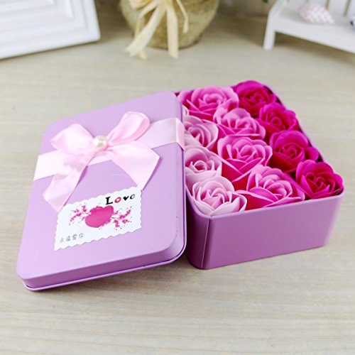 GshoppingLife Rose Soap Flower Sweet-smelling Wash Hands & Petal Bath Rose Soap Flower with Alloy Box Gradient Women's day Valentine's day Christmas Gift Romantic(12pcs)