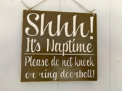 -. Binding : Kitchen -. Brand : Prim and Proper Decor -. Color : white, cream -. EAN : 0722589243004 -. Feature : YOU CHOOSE THE COLOR! / Wood sign measures 8x8 inches. / Hand-painted, distressed and sealed to last a lifetime. -. IsAutographed : 0 -. Label : Designs by Prim -. Manufacturer : Designs by Prim -. ProductGroup : Home -. ProductTypeName : HOME -. Publisher : Designs by Prim -. Studio : Designs by Prim -. Title : Shhh... Naptime Do Not Knock Or Ring Doorbell (Choose Color) Rustic Do Not Disturb Nursery Sign Custom Handmade Welcome Door Hanger Night -. UPC : 722589243004