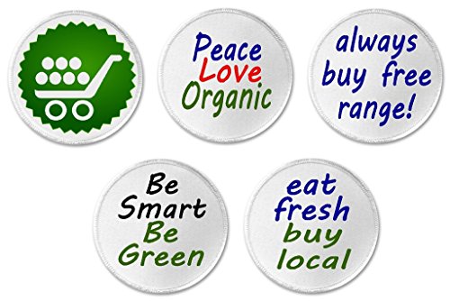 (AT Designs)/Accessories/Scarves/DIRECT FROM USA/AT Designs Set 5 Be Smart Green Buy Local Organic 3" Sew On Patches Healthy Eco