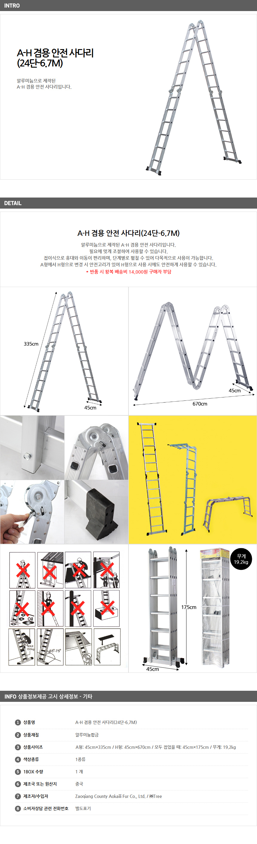 High strength combined safety ladder 24 stages -6.7M Aluminum height adjustable AH