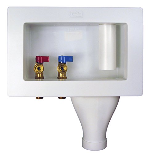 Water-Tite 87351 Right-Hand Wide-Mouth Washing Machine Outlet Box with Brass Quarter-turn Valves Installed, 1/2" Sweat Connection, White