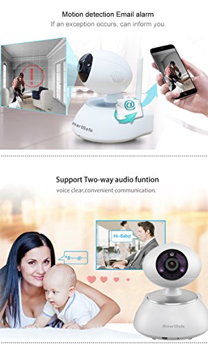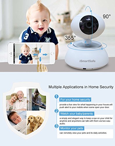 -. Title : iSmartSafe HD 720P Wireless Indoor Home Security Camera, Built-in Microphone, Pan/Tilt with 2-Way Audio Day/Night Vision Security Camera - White