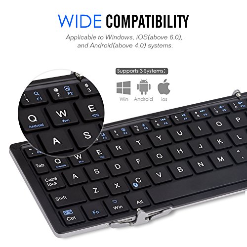 Foldable design, perfect portable bluetooth keyboard with pocket size. Folding size: 5.8"*3.5"*0.7", Open size: 9.9"*3.5"*0.2".