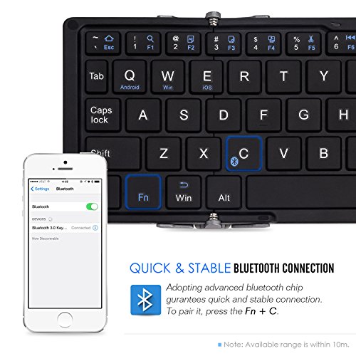 Press Fn+C, fast access to bluetooth pairing state. American broadcom bluetooth 3.0 chip for high speed connection and signal distance up to 33ft(10m).