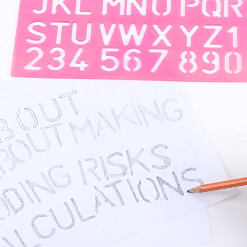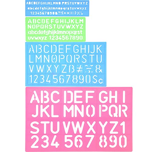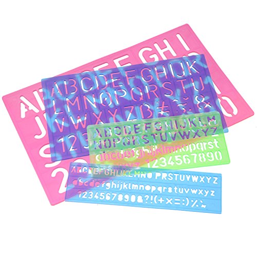 Shappy 4 Pieces Letter Stencil Alphabet Stencils Number Craft Ruler Decorative Plastic Letter Stencils Guides Set, Assorted Colors