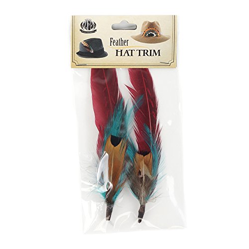 Zucker Feather Products Feather Hat Trims, Dark Aqua/Tango Red/Natural