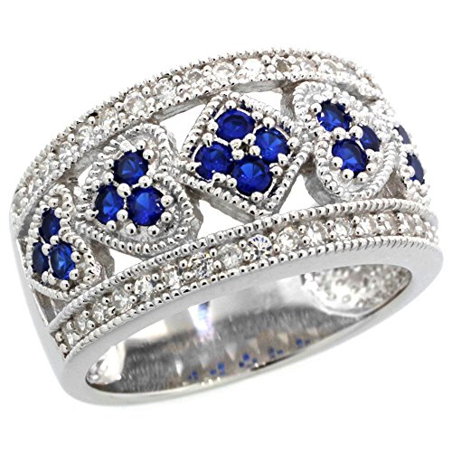 -. Title : Sterling Silver Blue Sapphire Cubic Zirconia Cigar Band Ring Hearts & Diamonds, sizes 6-9