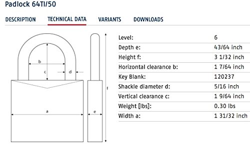 ABUS 64TI/50 C KD Titalium Aluminum Alloy Keyd Different Padlock 2-Inch with 5/16-Inch Diameter Nano Protect Steel Shackle