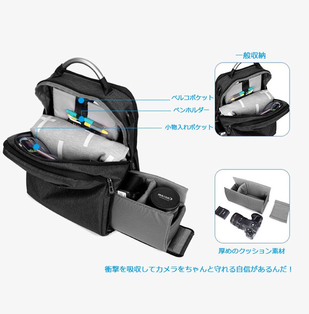 Partitions inside can be replaced with velcro straps anywhere, and it is also possible to respond to changes in lens length and body size.