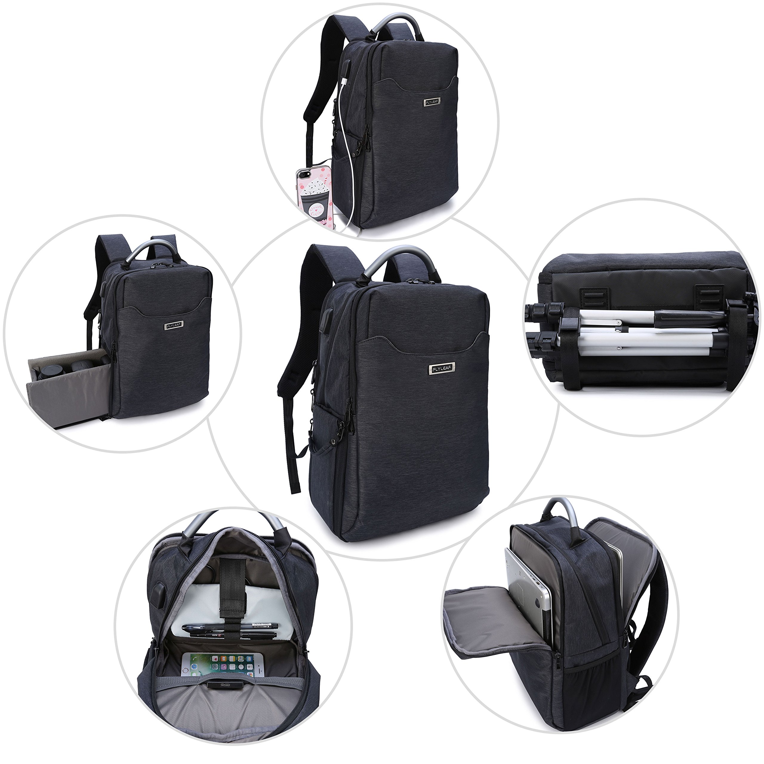 Tripod mountable, 14-15.5 inch notebook PC, ipad air and clothing can be stored.