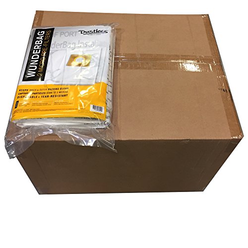 Disposable, tear-resistant WunderBag Micro-Prefilter can hold 40lbs of dust and debris for easy clean-up and continued vacuuming. The Micro-Mesh material retains strength when wet and is breathable, keeping suction strong. A 5-ply filtration design captures extremely fine dust and slurry for the toughest job and exceeds EPA hazardous material removal standards when used with Dustless HEPA Vacs. By capturing the invisible dust your eye can't see, the WunderBag keeps debris where it belongs, in the bag and out of your Dustless Wet/Dry and Dustless HEPA Vac filtration system prolonging vacuum life. When the filter is full, an easy peel-and-stick label seals the WunderBag opening preventing debris from escaping and keeps air clean.Feature