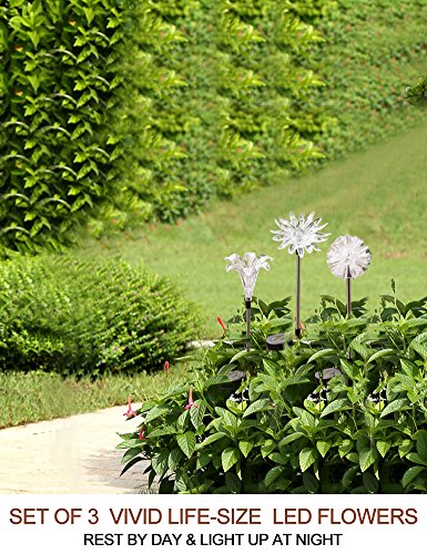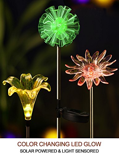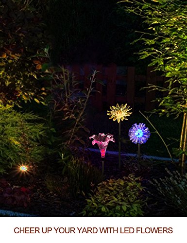 BRIGHT ZEAL BZ [Set of 3] LED Color Changing Solar Stake Lights Outdoor - Solar Light LED Garden Decor Statues (DANDELION, LILY, SUNFLOWER) - Patio Lights LED Outdoor Multicolor Changing LED Lights