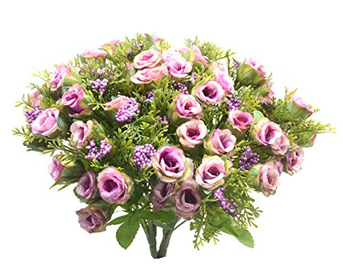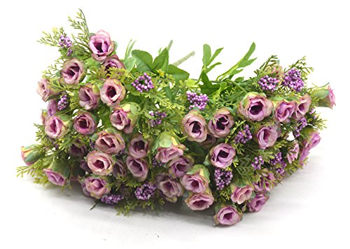 Bird Fiy Artificial Silk Fake Flowers Leaf Rose Wedding Floral Decor Bouquet,Pack of 4(Purple)
