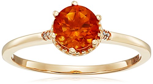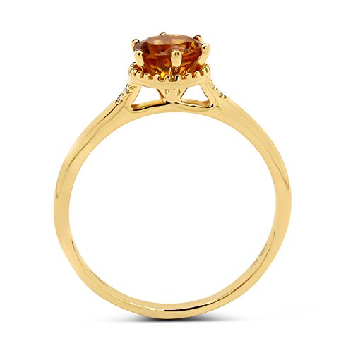 0.68 Carat Genuine Madeira Citrine & White Diamond 14K Yellow Gold Ring