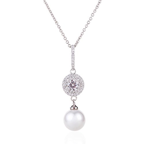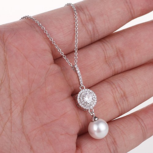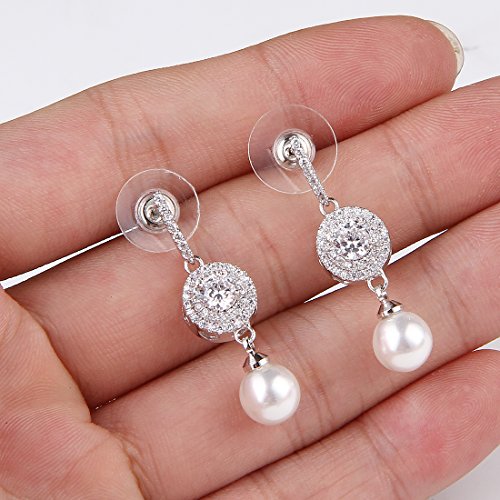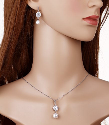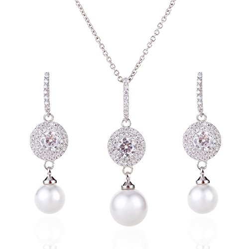 -. Feature : Vintage wedding or bridesmaid cubic zirconia necklace and earrings set with round white pearls drops for christmas gift ideas. / Pendant size:4.0cm(1.57")by 1.0cm(0.39").Chain:41cm(16.14")+4cm(1.57")of the extension chain.Pendant weight:4.12g.10 MM Pearl Pendant.Earrings Size:3.5cm(1.37")by 1.0cm(0.39").One Earring Weight:1.84g.8 MM Pearl Earrings. / SAFE ON SENSITIVE SKIN:women's wedding pendant necklace earrings jewelry sets using 925 Sterling silver post with friction back lead and nickel free,You'll get a brilliant and sparkling look,protect your ear from allergies,you are safe.Brass metal is much smoother and will protect your skin from rubbing,you wearing it.Also,jewelry made by brass metal has light weight. / Includes Beautiful Free Gift Box Ideal for Women wedding/Engagement/Halloween/Mothers-day/Valentines-day/Meeting/Party/Anniversary/Christmas/Birthday/Prom/Thanksgiving-day gift.You will be surP.R.Ised get a real value for your money when you get it. / Full Money Back and Lifetime Guarantee: 100% risk free,30 days money back guarantee if not delighted.Your satisfaction is our motivation.