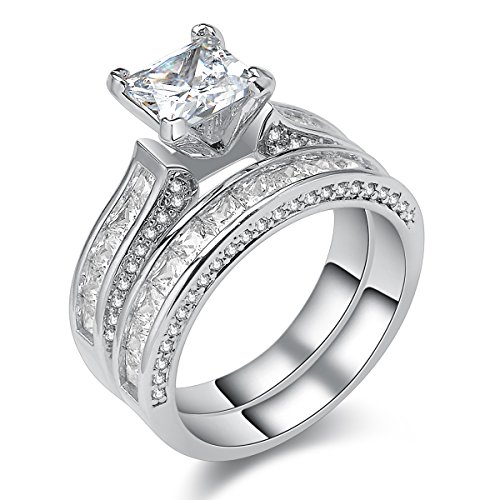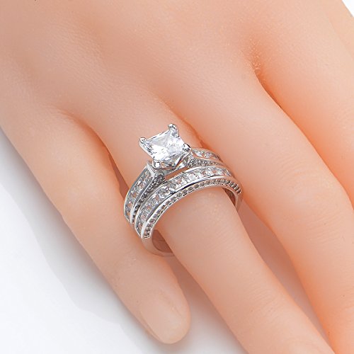 -. Title : Newshe Jewellery P.R.Incess White Cz 925 Sterling Silver Wedding Band Engagement Ring Sets Size 5-10