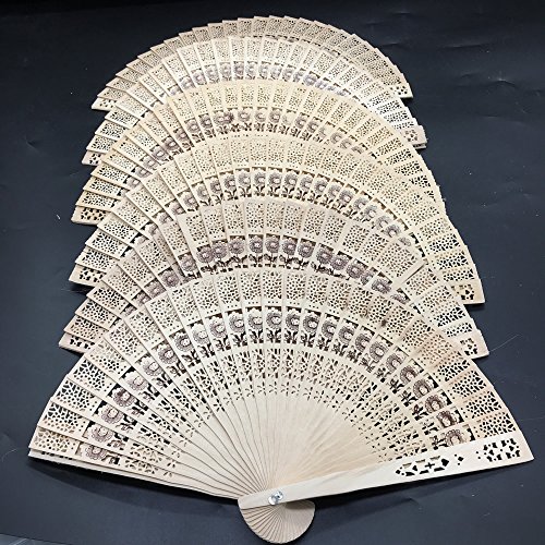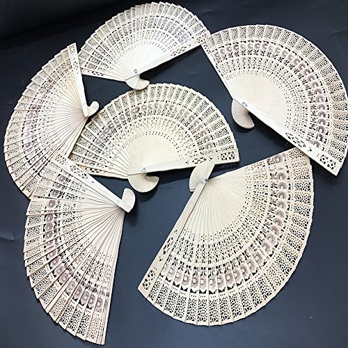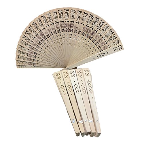HUELE 6pcs Chinese Wooden Personal Hand Held Folding Fans With flowers for Wedding Decoration, Birthdays, Home Gifts
