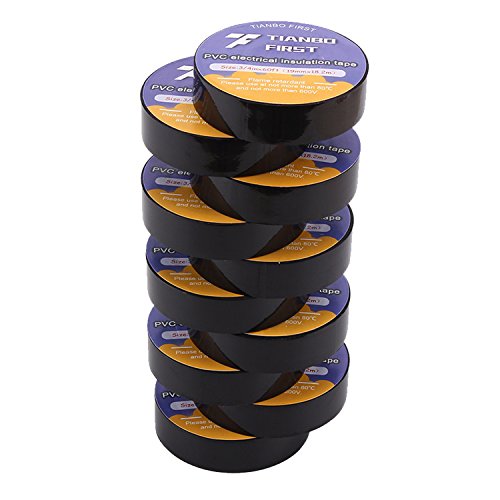 TIANBO FIRST Black PVC Electrical Tape - 3/4 In by 60 Ft (19mm18m) Per Roll -10 Pack