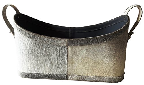 Deco 79 95060 Leather Magazine Holder with Strap Handles, Beige/White/Gray