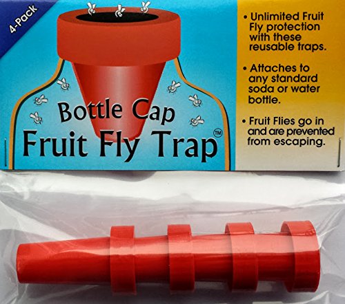-. Brand : Bottle Cap Trap -. Color : Red -. EAN : 0739189332304 -. Feature : Unlimited Fruit fly protection with these reusable traps. / Attaches to any standard soda or water bottle (not included). It's a great way to recycle. / Bait used is what you have in your home that the fruit flies are already attracted to. / Fruit flies go in and the trap helps prevent them from escaping. Secure attachment helps prevent spills if tipped over. / No messy cleanup. Just replace the trap with the original cap and dispose of the bottle properly. -. Label : Bottle Cap Trap -. Manufacturer : Bottle Cap Trap -. MPN : BCT40RD -. PackageQuantity : 4 -. PartNumber : BCT40RD -. ProductGroup : Lawn & Patio -. ProductTypeName : OUTDOOR_LIVING -. Publisher : Bottle Cap Trap -. Studio : Bottle Cap Trap -. Title : Bottle Cap Fruit Fly Trap (4-pack) -. UPC : 739189332304