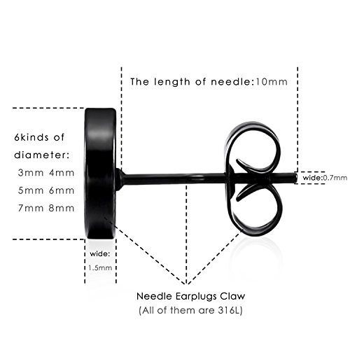 LIEBLICH Edelstahl mini Ohrstecker schwarze Ohrringe fur Manner und Frauen Durchmesser 6 Paare 3mm-8mm