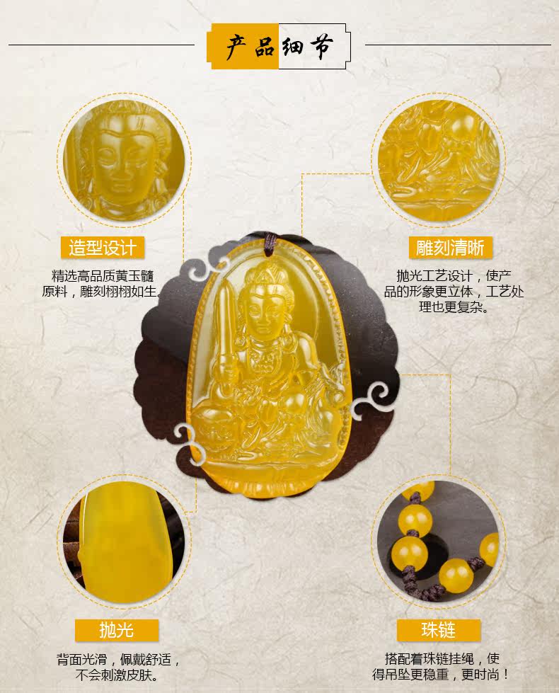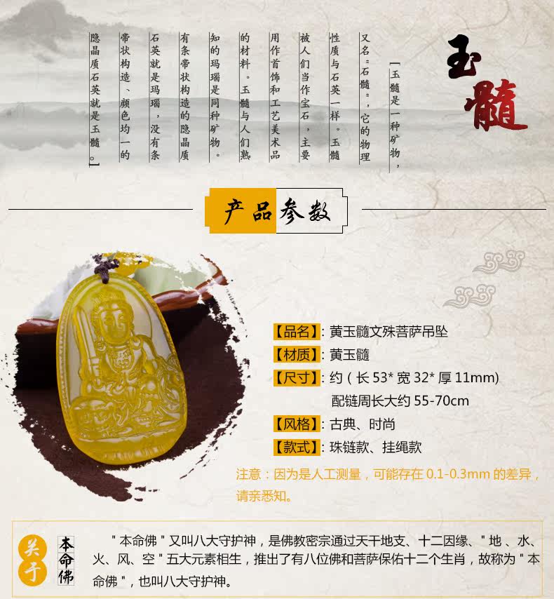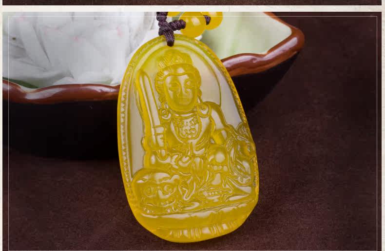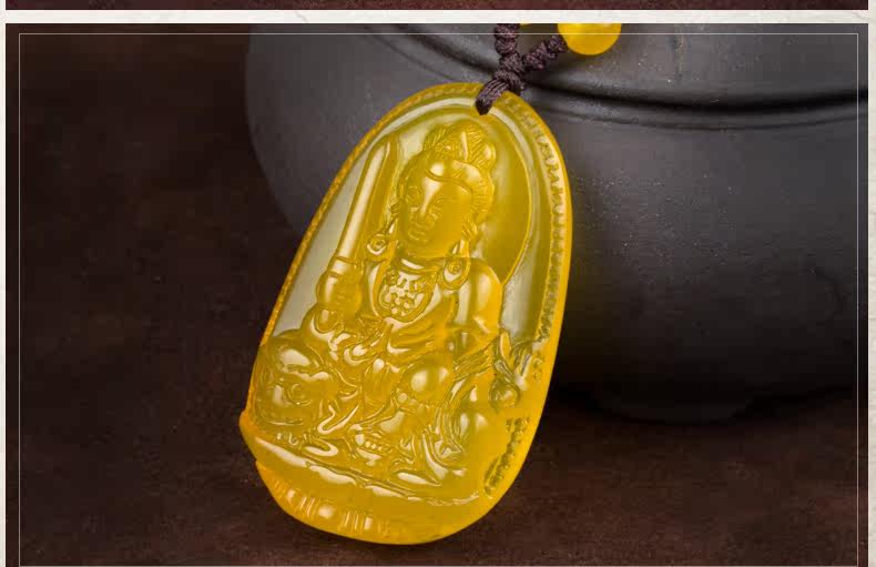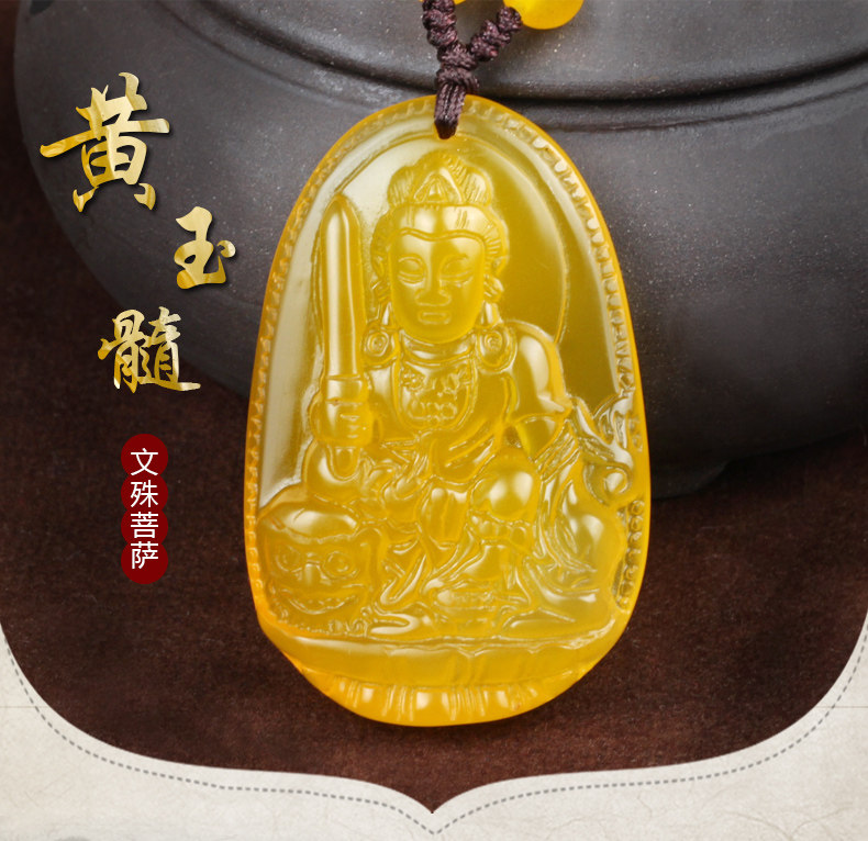 开光天然黄玉髓文殊菩萨本命佛吊坠生肖属兔守护神吊坠
