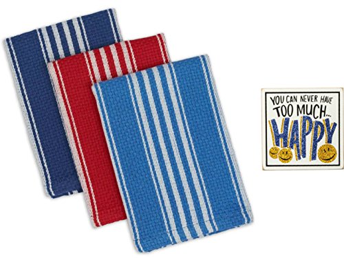 Design Imports Maritime Heavyweight Dish Cloth Set of 3 and Kitchen Magnet
