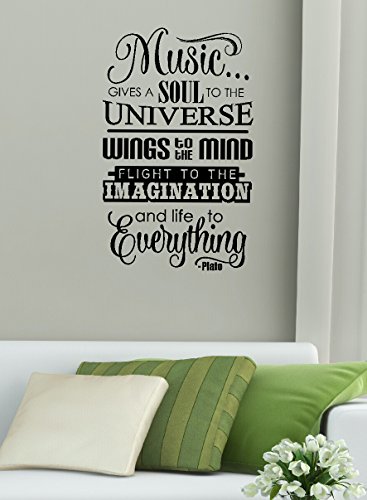 -. Binding : Tools & Home Improvement -. Brand : Wall Decor Plus More -. Color : Black -. EAN : 0754207317033 -. Feature : Size: 23"H x 14"W / Color: Black / Made with High Quality Indoor Matte-finish material designed for Home Decor use / Exclusive product of Wall Decor Plus More / Easily removable (but not reusable) - Patience is required when applying to textured walls. -. Label : Wall Decor Plus More -. Manufacturer : Wall Decor Plus More -. Model : WDPM3361 -. MPN : 5567781 -. NumberOfItems : 1 -. PackageQuantity : 1 -. PartNumber : 5567781 -. ProductGroup : Home Improvement -. ProductTypeName : BUILDING_MATERIAL -. Publisher : Wall Decor Plus More -. Size : 23x14 Inch -. Studio : Wall Decor Plus More -. Title : Wall Decor Plus More WDPM3361 Music Gives Life to Everything Wall Decal Sticker Quote Lettering Art, 23x14-Inch, Black -. UPC : 754207317033