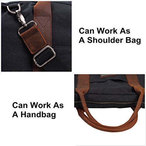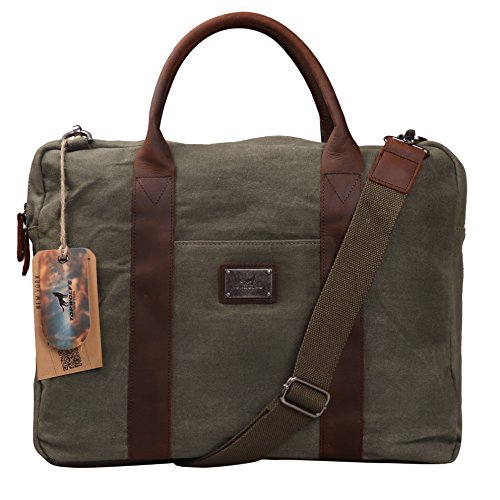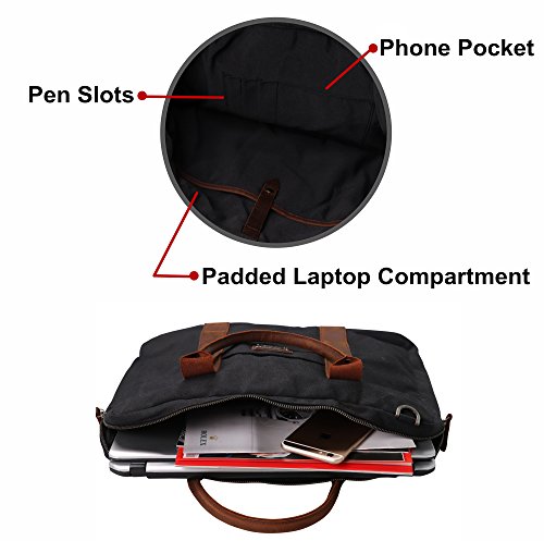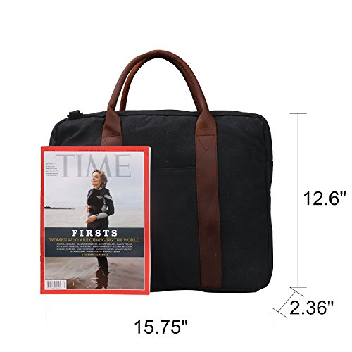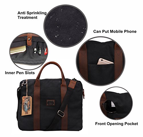 -. Title : Canvas Briefcase Messenger TOPWOLFS fit 15.6" Laptop Computer Notebook Handbag Tote Crossbody Bag Hand Bag Genuine Leather Handle with Shoulder Strap Waxed Canvas Waterproof