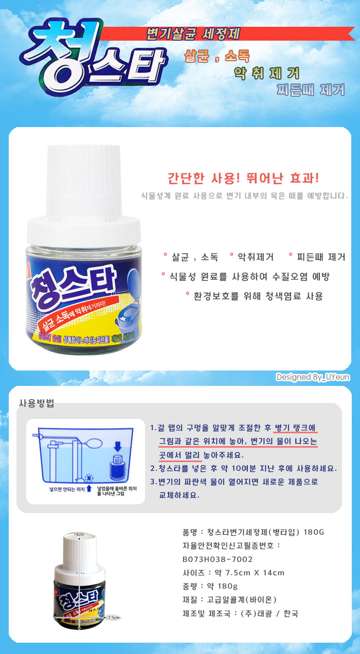 Cleaner toilet seat cleaner bottle type 180G two smell clean blue star