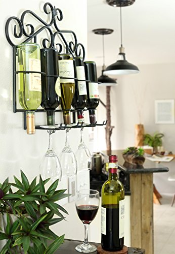 - Unique, Elegant Look: With its graceful filigree design & smooth powder-coated finish, this decorative wine rack enhances any decor. Hangs beautifully in your kitchen, dining room, bar, or study.