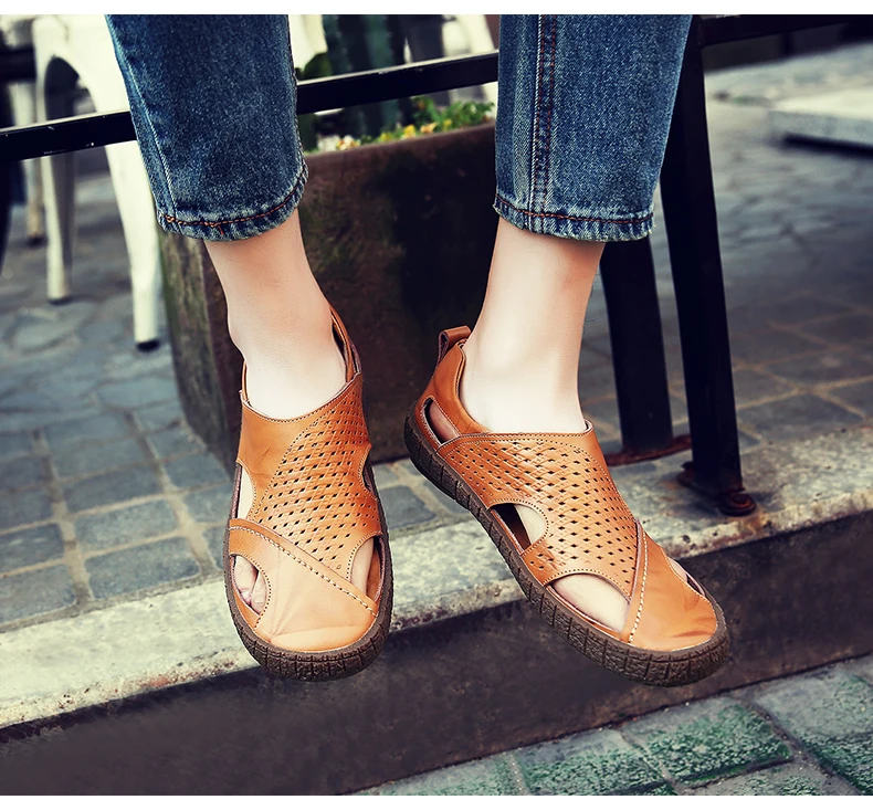 Sandalias men:Mens leather sandal