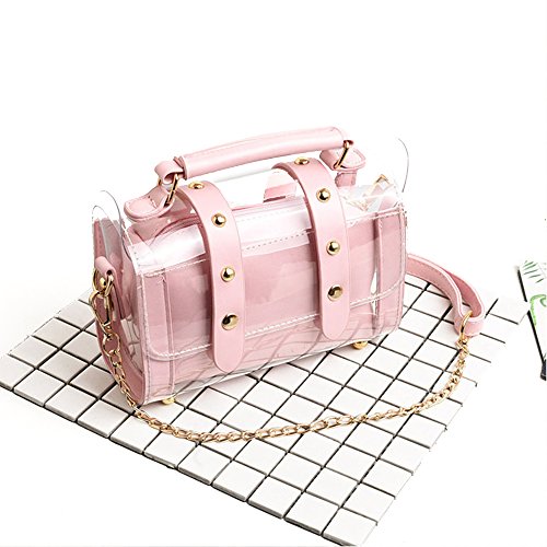Women's 2-in-1 Clear Crossbody bags Rivet Chain Shoulder Bags Transparent Handbags Messenger Bags Purse with PGA & NFL Approved bags B04